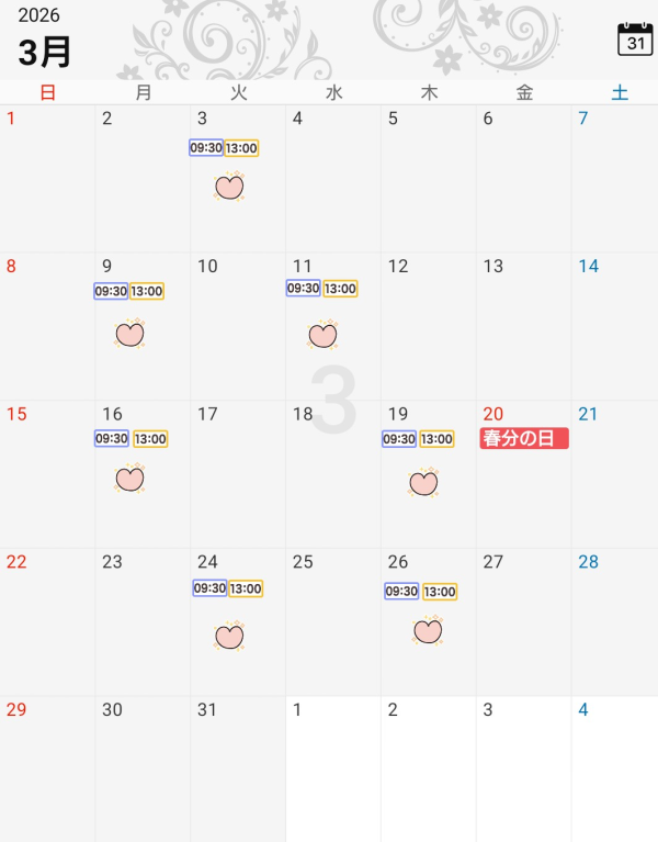 3月前半予定🍀